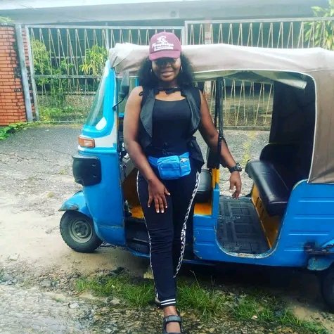 Amarachi Ihezie, a Sociology graduate of the University of Calabar (UNICAL), Calabar, Cross River State.After graduating from university Miss Ihezie took up Keke riding as a means of survival while looking for better job opportunities.