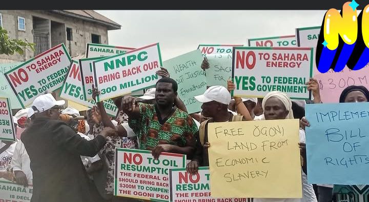 The appeal came during a peaceful protest at the weekend in Bori, Khana Local Government Area, where indigenes carried placards with inscriptions such as “No to Oil Resumption,” “Free Ogoni Land from Economic Slavery,” and “NNPCL Bring Back Our $300 Million.” The protesters condemned the resumption of oil activities in their communities without prior consultation or proper environmental remediation.
