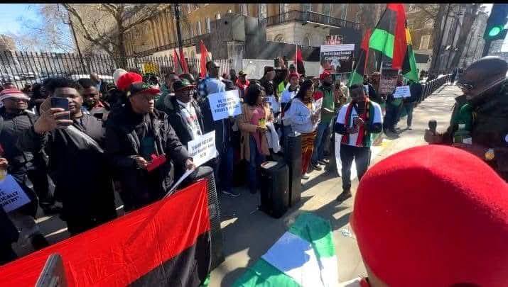 The most prominent demonstrations were organized by the IPOB UK chapter. Protesters gathered at Parliament Square, 10 Downing Street, the Commonwealth Office, and the Nigerian High Commission.