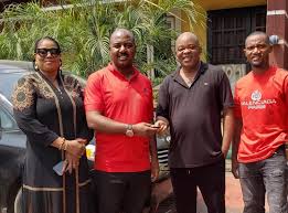 (l-r): PDP zonal women leader, Enugu- North, Mrs. Ngozi Ezeja, Igbo-Eze North PDP Chairman, Dr. Solomon Ogiri, Igbo-Eze North PDP stakeholder and donor of 2014 Toyota Sienna bus to the party, Hon. Willy Chkwuafugo Eya and another guest…at the presentation of the Sienna bus to the party in Lagos on Sunday by Hon. Eya