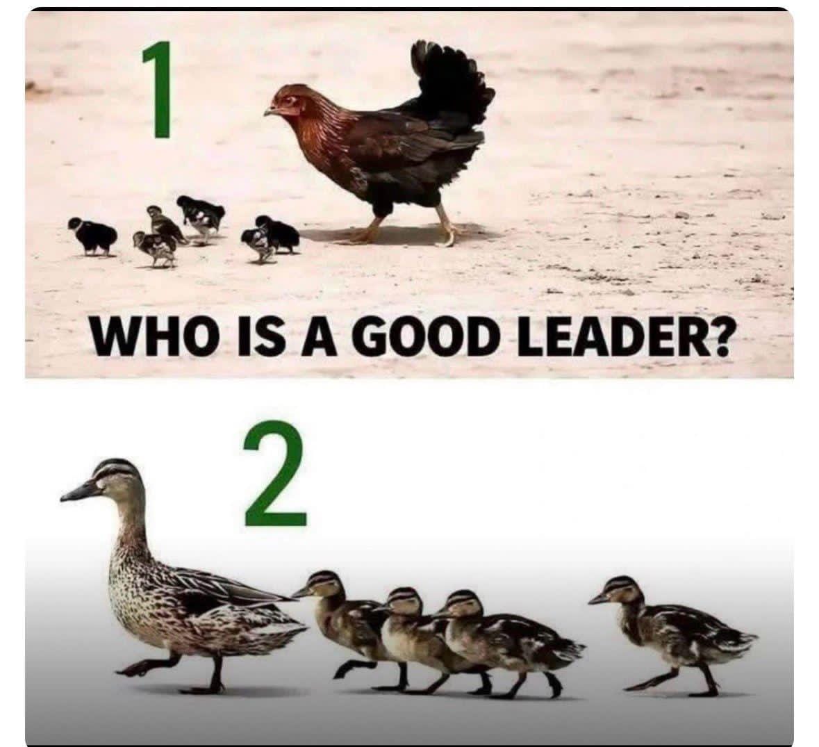 ​A “good” leader isn’t stuck in one position. They have the emotional intelligence to know when to be the duck and when to be the chicken.